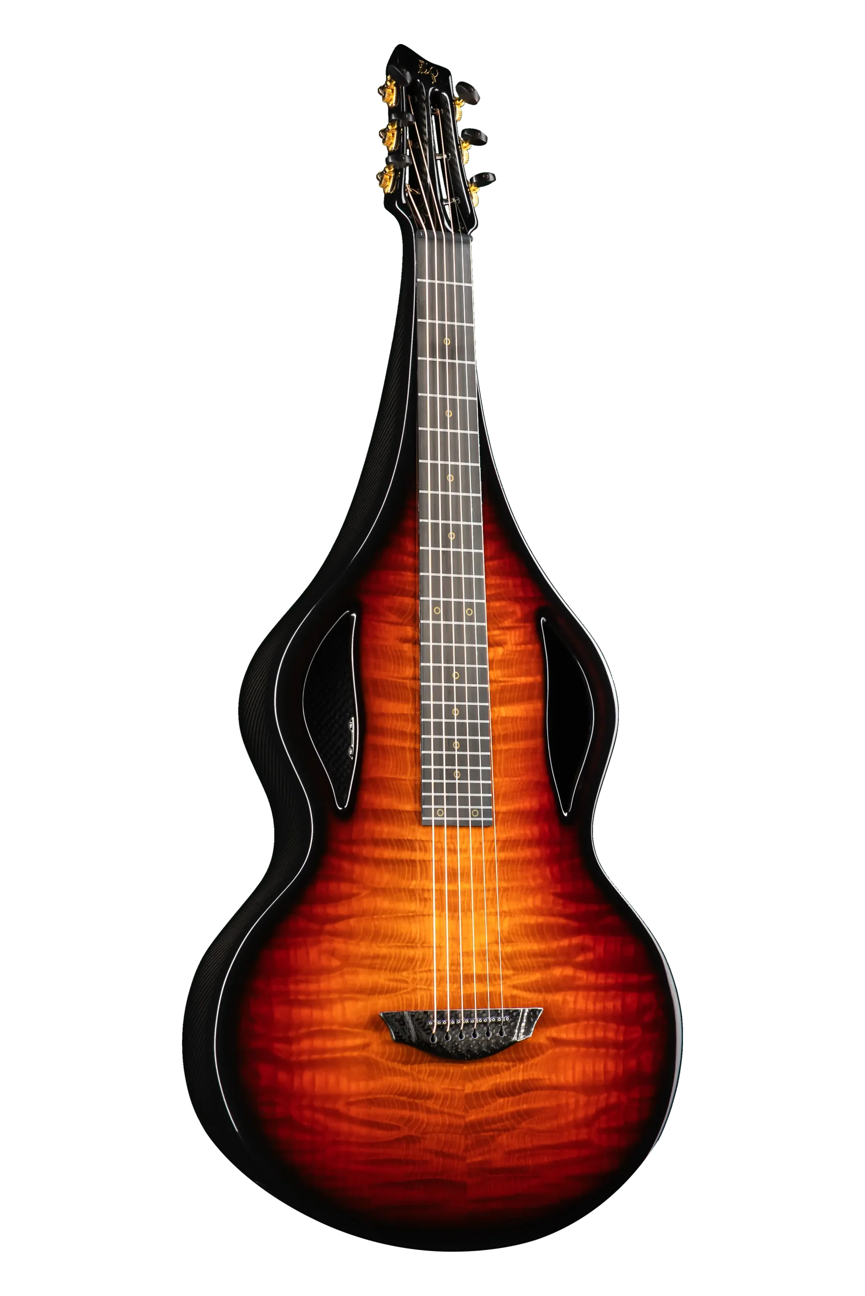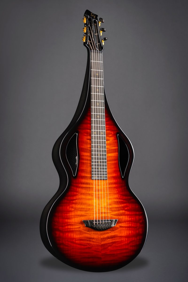 Carbon fibre is now used in all the most high tech industries from Aerospace to Formula one Racing where strength and weight is paramount. In fact it was in Formula One Power Boat racing that we discovered that the properties of carbon fibre are also perfectly suited to guitar making creating a light weight structure that holds up under the tension of the strings while resonating freely with the lightest touch .