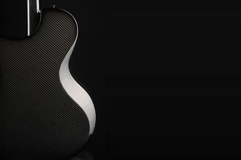 Carbon fiber is now used in all the most high tech industries from Aerospace to Formula one Racing where strength and weight is paramount. In fact it was in Formula One Power Boat racing that we discovered that the properties of carbon fiber are also perfectly suited to guitar making creating a lightweight structure that holds up under the tension of the strings while resonating freely with the lightest touch.