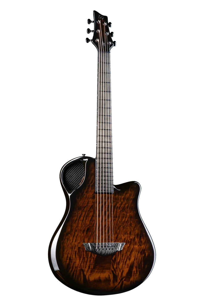 Carbon fiber is now used in all the most high tech industries from Aerospace to Formula one Racing where strength and weight is paramount. In fact it was in Formula One Power Boat racing that we discovered that the properties of carbon fiber are also perfectly suited to guitar making creating a lightweight structure that holds up under the tension of the strings while resonating freely with the lightest touch.