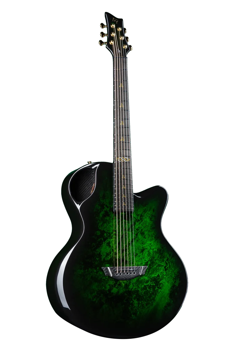 Intricacy is our excellence. Our signature one-piece moulding process delivers a guitar that is both incredibly strong and stable, resulting in fewer trips to your local luthier. The entire neck and body of Emerald Guitars are moulded together resulting in no joints becoming weak or failing over time whilst delivering impeccable resonance and sustain.