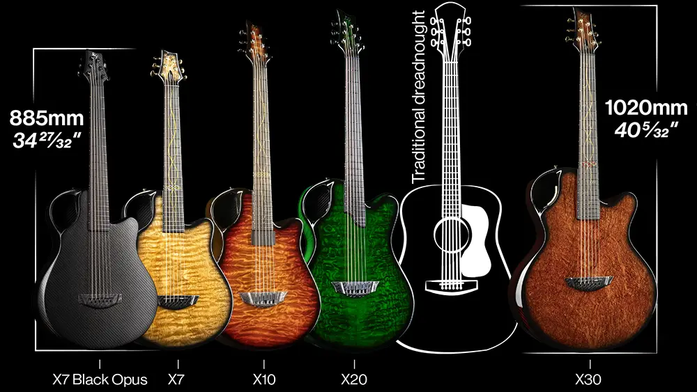 The X7 is our compact, parlor-sized acoustic — designed for players who want full-bodied tone in a smaller, travel-friendly form. With its ergonomic carbon fiber body and 24” scale length, the X7 offers exceptional comfort and playability, whether you’re at home, on the road, or on stage.